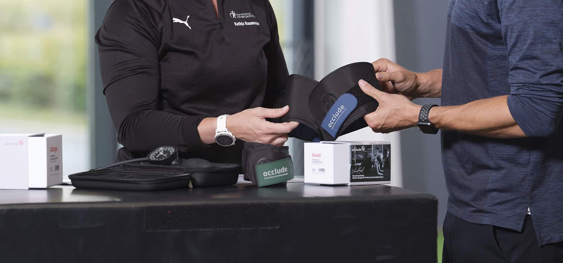 Hvis du ønsker at træne med begge arme samtidig, anbefaler vi i stedet Occlude Athlete Small pakken, som indeholder to S-manchetter, pumpe og rygsæk.
